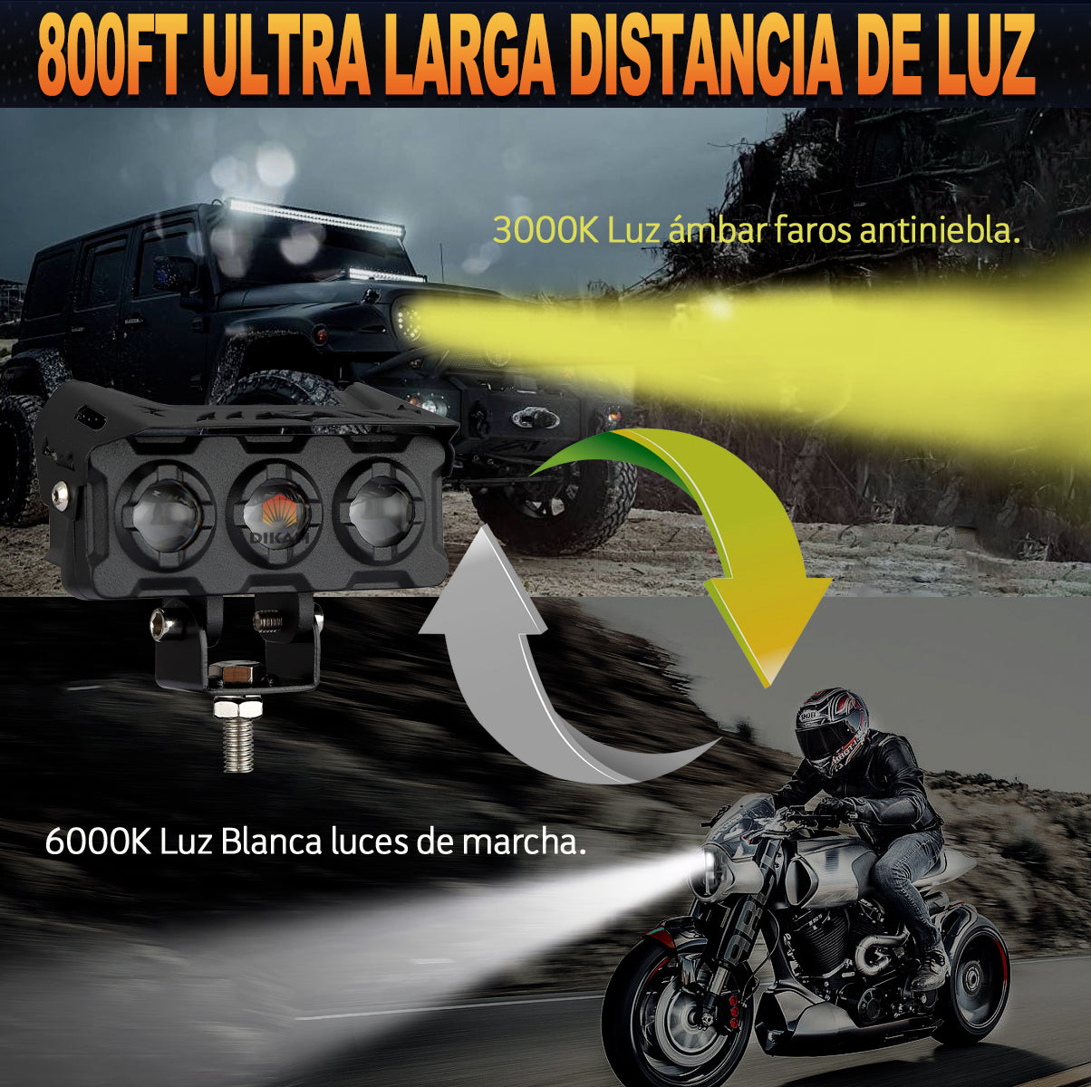 Actualiza el sistema de iluminación de tu vehículo y experimenta una visibilidad y seguridad excepcionales. Estos faros LED bi-color universales con lupa incorporan un diseño avanzado de luz alta y baja integradas, proporcionando una solución de iluminación profesional para tu Jeep, motocicleta o vehículo todoterreno.